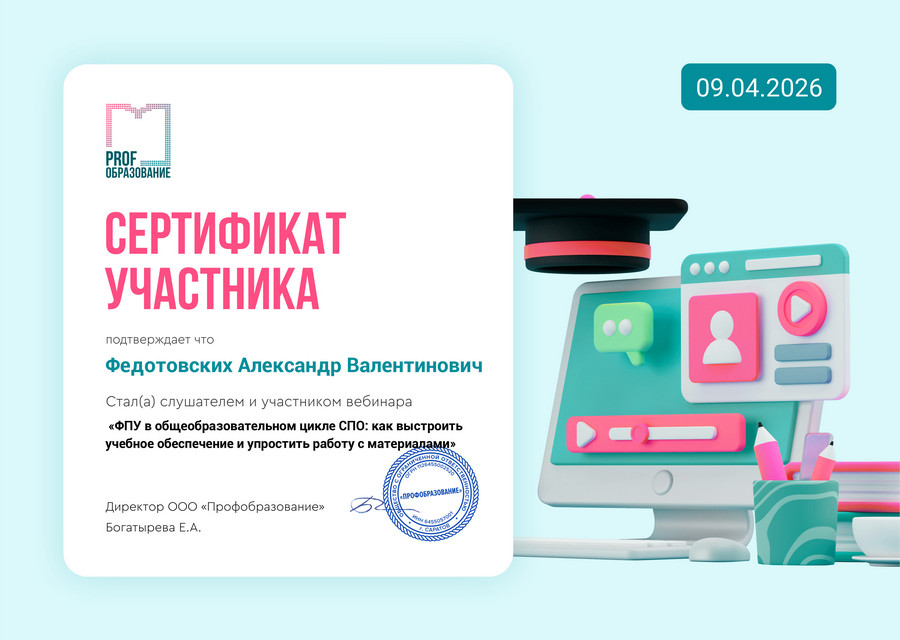 9 апреля 2026 года на платформе PROF ОБРАЗОВАНИЕ состоялось обсуждение темы «ФПУ в общеобразовательном цикле СПО: как выстроить учебное обеспечение и упростить работу с материалами».