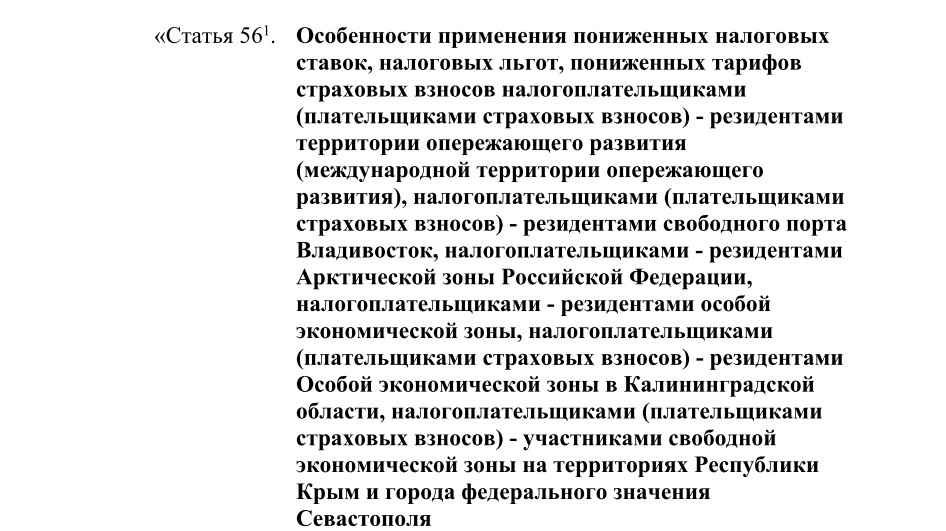 В России установят единые принципы предоставления налоговых льгот для участников особых экономических зон, территорий опережающего развития и т. п. Закон об этом приняла Госдума. Документ, в числе прочего, касается свободного порта Владивосток, Арктической зоны и ряда других территорий со специальными режимами в экономике.