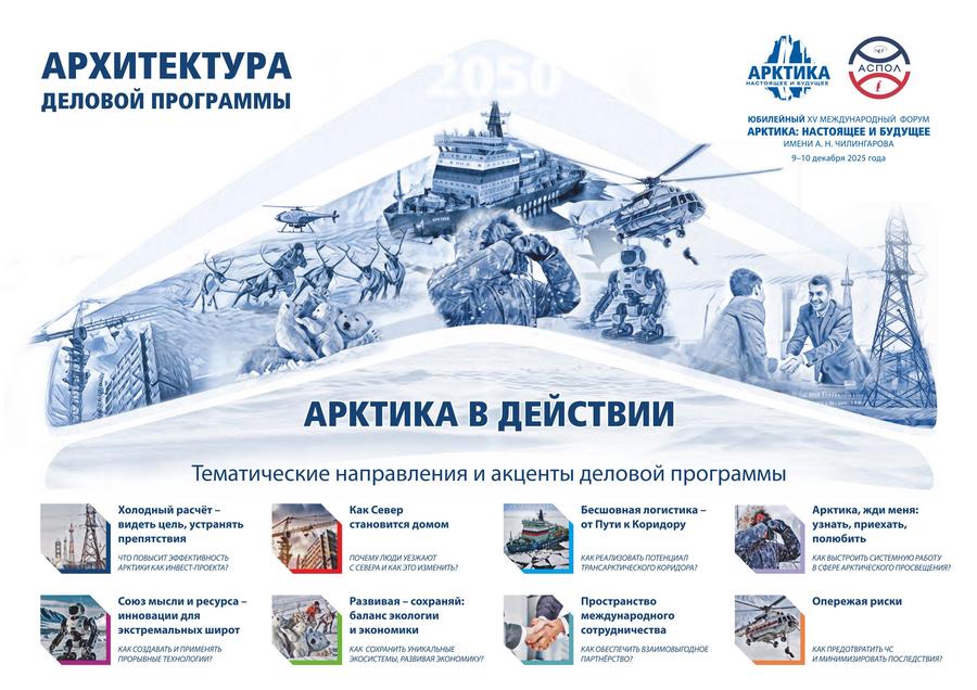 Девиз форума — «Арктика в действии». Деловая программа ориентирована на содействие реализации национальных целей в Арктической зоне Российской Федерации. В центре внимания – превращение идей и инициатив в конкретные результаты с акцентом на необходимые практические шаги для реализации арктических проектов.